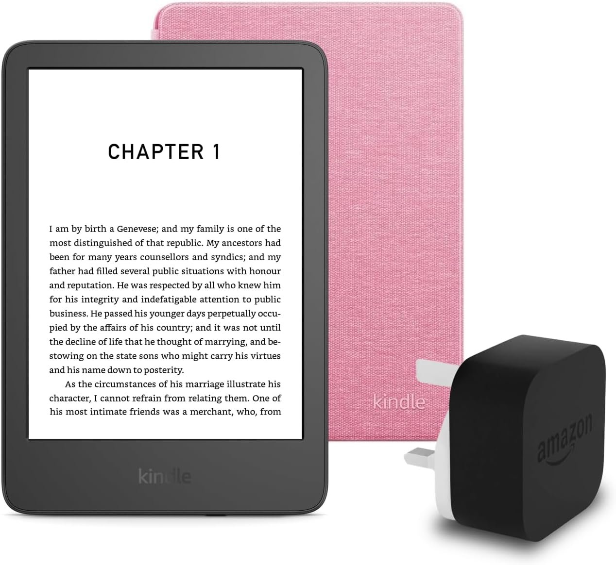 Kindle (2024 Release) 16 GB with ads, an Amazon Fabric Cover and an Amazon Powerfast 9W Power Adapter