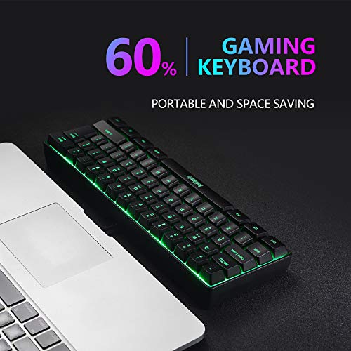 RedThunder 60% RGB Gaming Keyboard and Mouse Combo, UK Layout Ultra Compact Backlit Mini Keyboard, Lightweight 7200 DPI Cellular Optical Mouse, Portable Wired Gaming Set for PC PS5 Xbox Gamers (Black)