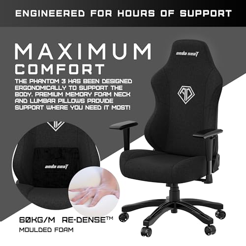 Anda Seat Phantom 3 Gaming Chair for Adults – Ergonomic Video Game Chairs, Reclining Office Computer Gamer Chair, Neck & Lumbar Back Support – Large Comfy Black Premium Linen fabric Desk Chair
