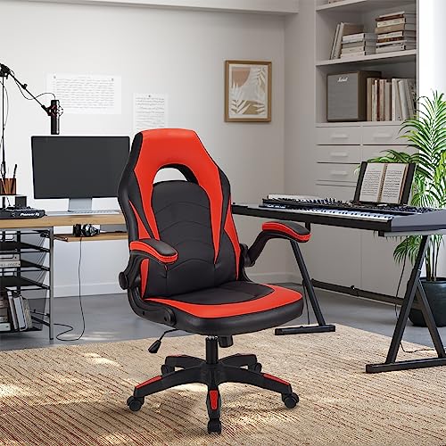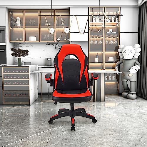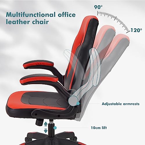 T-THREE.Gaming Chair, PU Leather Ergonomic Office Chair Swivel Office Chair with Lumbar Support, Executive Chair for Adults with upholstered armrests and seat Cushion, for Home Office Red