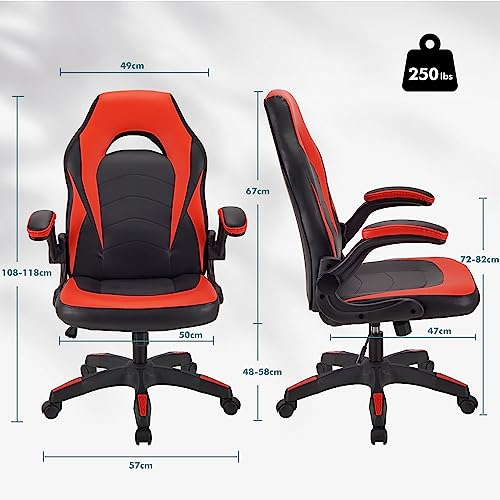 【Reliable Quality】The mid-back design provides multiple body contact points to share the pressure on the back, – This gaming chair has a sturdy metal base frame that supports up to 330 lbs.