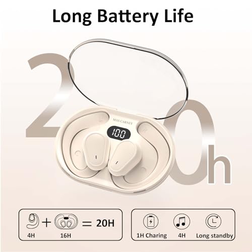 MAS CARNEY Open Ear Headphones M6, Wireless Bluetooth Earbuds with Adjustable Ear Hook, 300mAh Battery, LED Display, 20 Hours Playtime,Transparent Charging Box Design, Warm Yellow