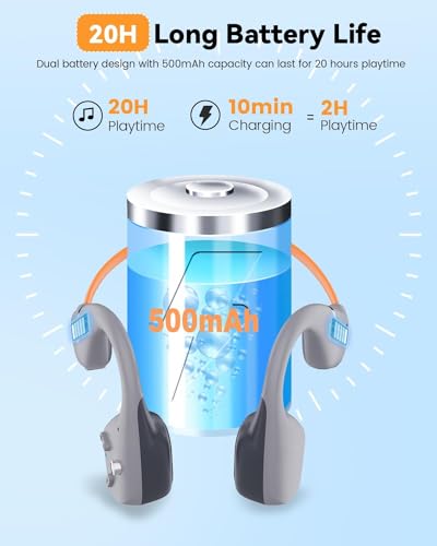 Bluetooth 5.3 & Long Battery Life Bone conduction headphones adopt the latest Bluetooth 5.3 chip. The transmission speed is faster and more stable. The battery capacity is 500 mAh, which can continuously listen to music and make phone calls for 15 hours. You can enjoy music comfortably at any time.