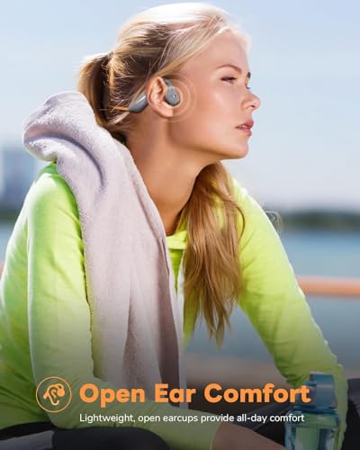 Safe and comfortable bone conduction headphones The open design ensures that you won’t miss the surrounding sounds while enjoying your music. This design that does not penetrate the ears can keep the ear canal clean, painless and reduce hearing damage. Weighing just 34 grams, the wireless earbuds are comfortable to wear all day.