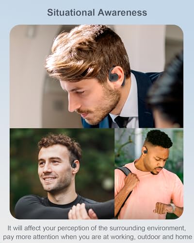 MAINTAIN SITUATIONAL AWARENESS AND SAFETY: The open ear sports earbuds allow you to stay connected to your surroundings while immersed in the music. When in motion, open ear headphones make you keep safe with improved awareness of pedestrians and traffic. When in the office, open ear headphones make you interact with your colleagues while hearing your favorite song. When at home, open ear headphones make you stay connected to your family and friends without missing any important messages