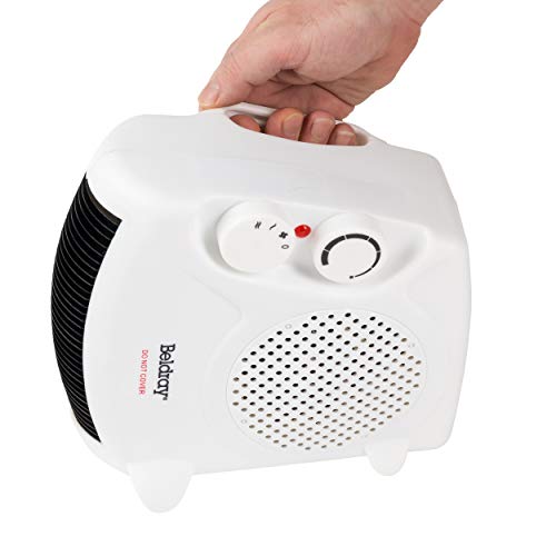 Beldray EH0569SSTK Electric Flatbed Fan Heater – Upright with 2 Heat Settings and Cool Air Function, Adjustable Thermostat, Overheat Protection, Dual Position, Portable Carry Handle, 2000 W