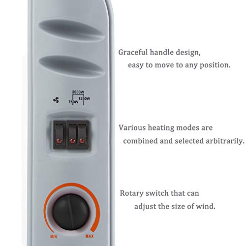 Convector Radiator Heater with Adjustable Thermostat/Adjustable 3 Heat Settings (750/1250 / 2000 W) /Electrical/Convection Heating/Oil-Free Radiator/with turbo fan