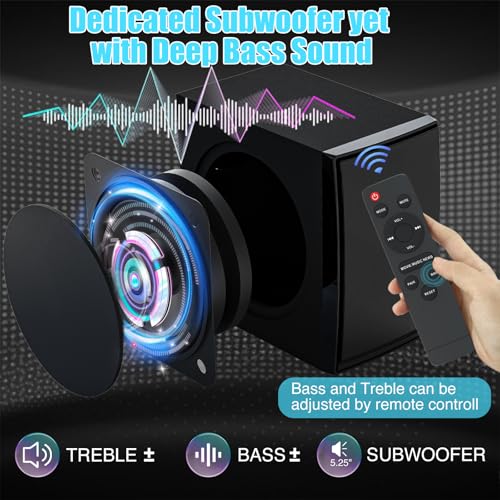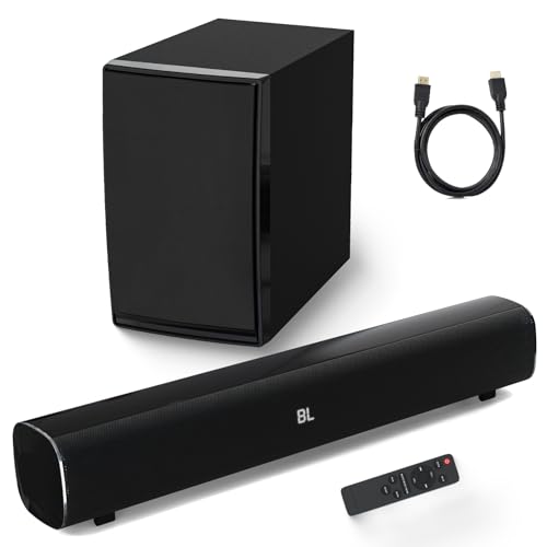 2.1 CH Compact Sound Bar for TV with Subwoofer,Deep Bass,No Distortion Soundbar with HDMI cable,PC Gaming Home Theater,Surround Sound Speaker System,Bluetooth/AUX/USB/Optical/HDMI(ARC) Connection