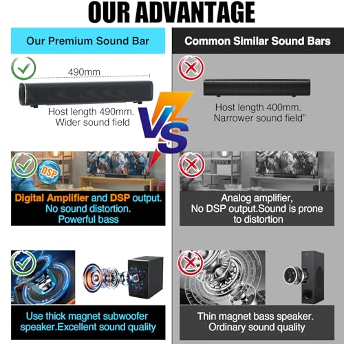 Thick Magnet Speakers for Durability and Power:Unlike flimsy speakers found in other products, this sound bar uses thick magnet speakers. They are built to last and deliver a powerful sound, especially in the low-frequency range.
