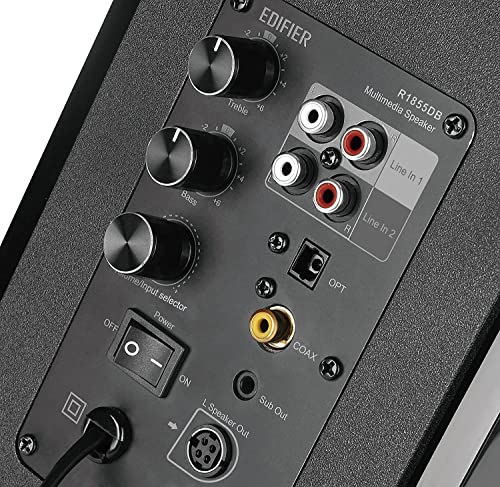 Edifier R1855DB Active Bluetooth Bookshelf Speakers with 2 x RCA Coax Subwoofer Line Out and Optical Input 2.0 Studio Monitor Speaker Built in Amplifier
