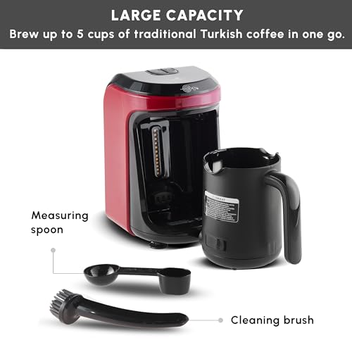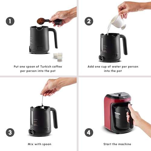 KARACA Hatir Hüps Turkish Coffee Maker For 5 People, Red, Fully Automatic Coffee Machine, Turkish Mocha with Milk, Hot Chocolate, Instant Coffee with Milk