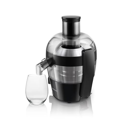 Philips Viva Collection Compact Juicer, 1.5 Litre, 500 Watt, Quick Clean Technology, Drip Stop, Dishwasher Safe Parts, See-through Pulp Container, Direct Serve, Black (HR1832/01)