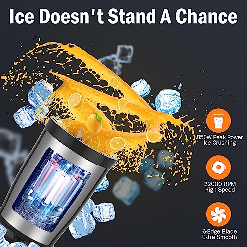 TENKER Personal Blender for Shakes and Smoothies, 850W Smoothie Blender for Kitchen with Small Cup Blender Grinder, 2 * 17Oz To-Go Cups and Spout Lids, BPA Free, Pulse Technology (Black)