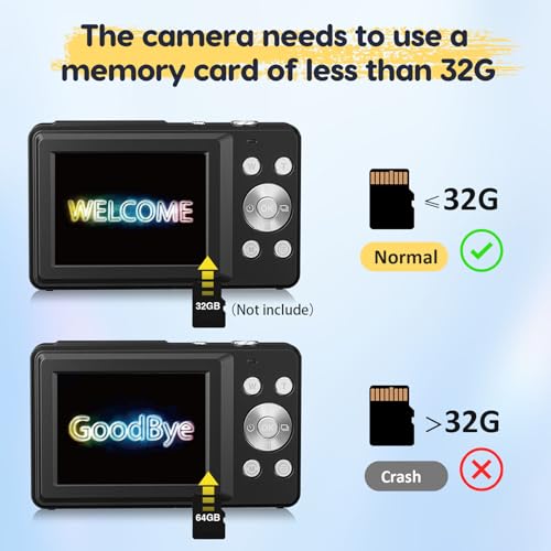 Digital Camera 44MP: This 44MP camera with 16X digital zoom is designed to capture high-resolution images with incredible detail. The high-quality sensor ensures that every shot is clear and vibrant. Whether you’re photographing a distant landscape or a close-up portrait, the 16X zoom allows you to get detailed shots effortlessly (TIPS: This camera only supports a memory card with less than 32G, otherwise the camera will crash!!!)