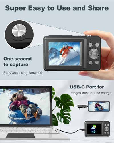 Easy to Use: Small and lightweight design, making it easy for children to handle. This compact digital camera includes a continuous shooting mode and intuitive controls that simplify the photography process. The small, ergonomic design ensures that it fits comfortably in little hands, allowing young users to explore their interest in photography without frustration