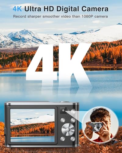 【Ultra HD Photo and Video Resolution】This Digital camera support premium 48MP photos and 4K HD video recording. Upgrade CMOS technology helps to capture vivid quality images and record stabler and smoother videos.This compact digital camera supports Autofocus function, which ensures subjects are always in clear focus to capture precious detailed images.