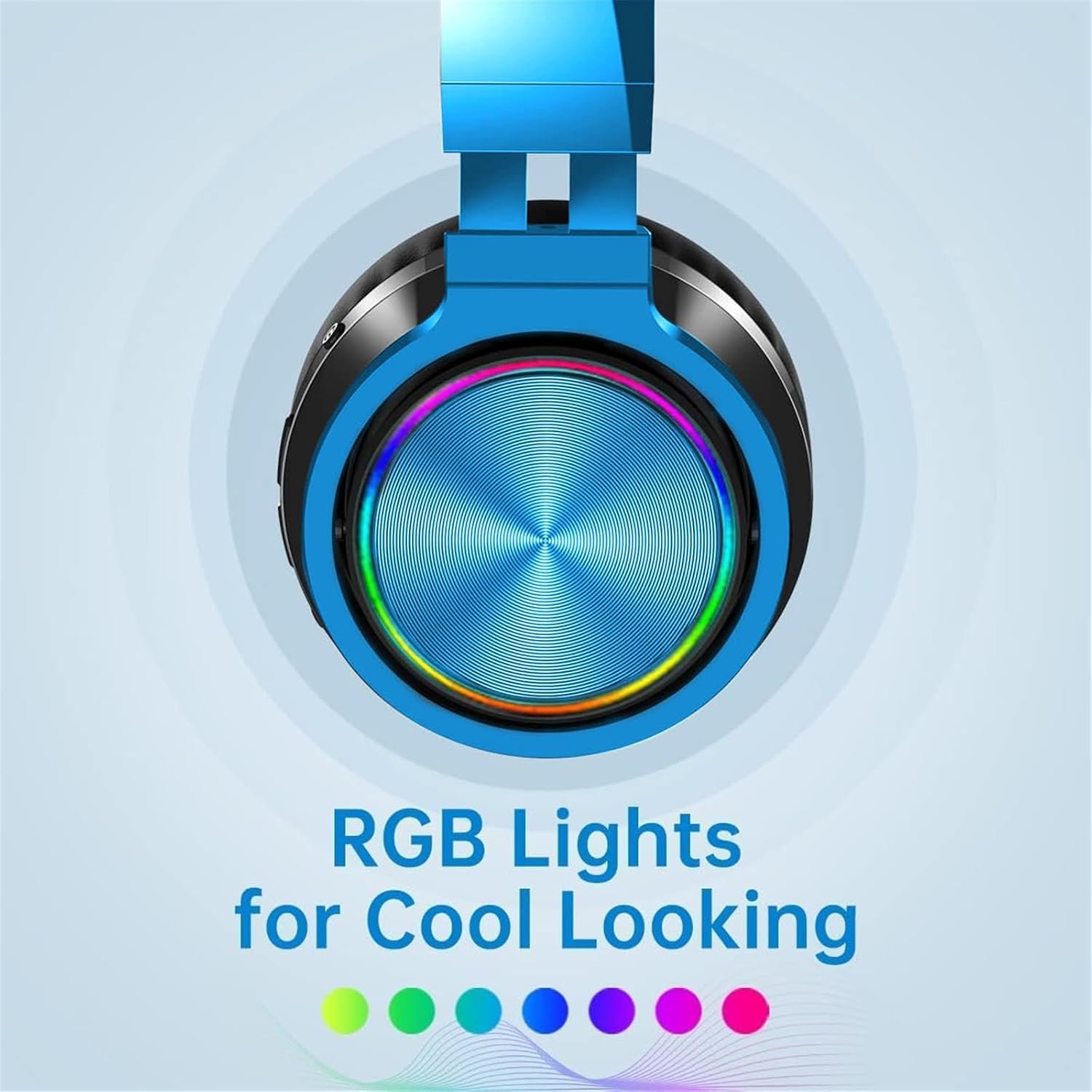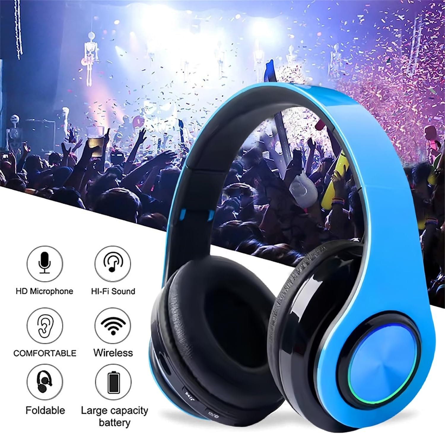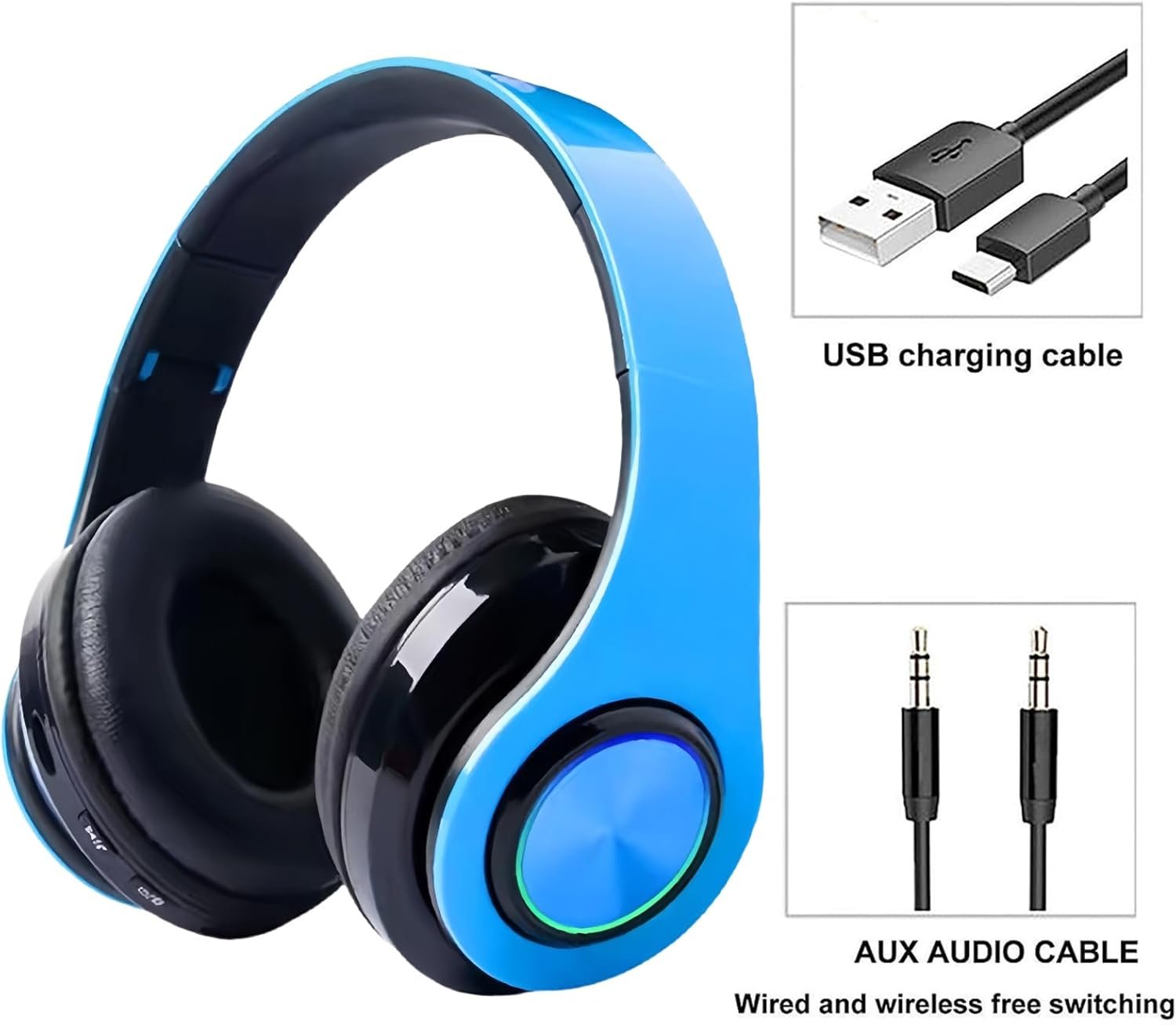 🎶【Wide Compatibility】: Simply press multi-function button 2s and the over ear headphones with mic will be in ready to pair. wireless headsets are compatible with all devices that support Bluetooth or 3.5 mm plug cables. They also feature a set of LED lights that run around the edges of the earpiece for an awesome, stylish look!