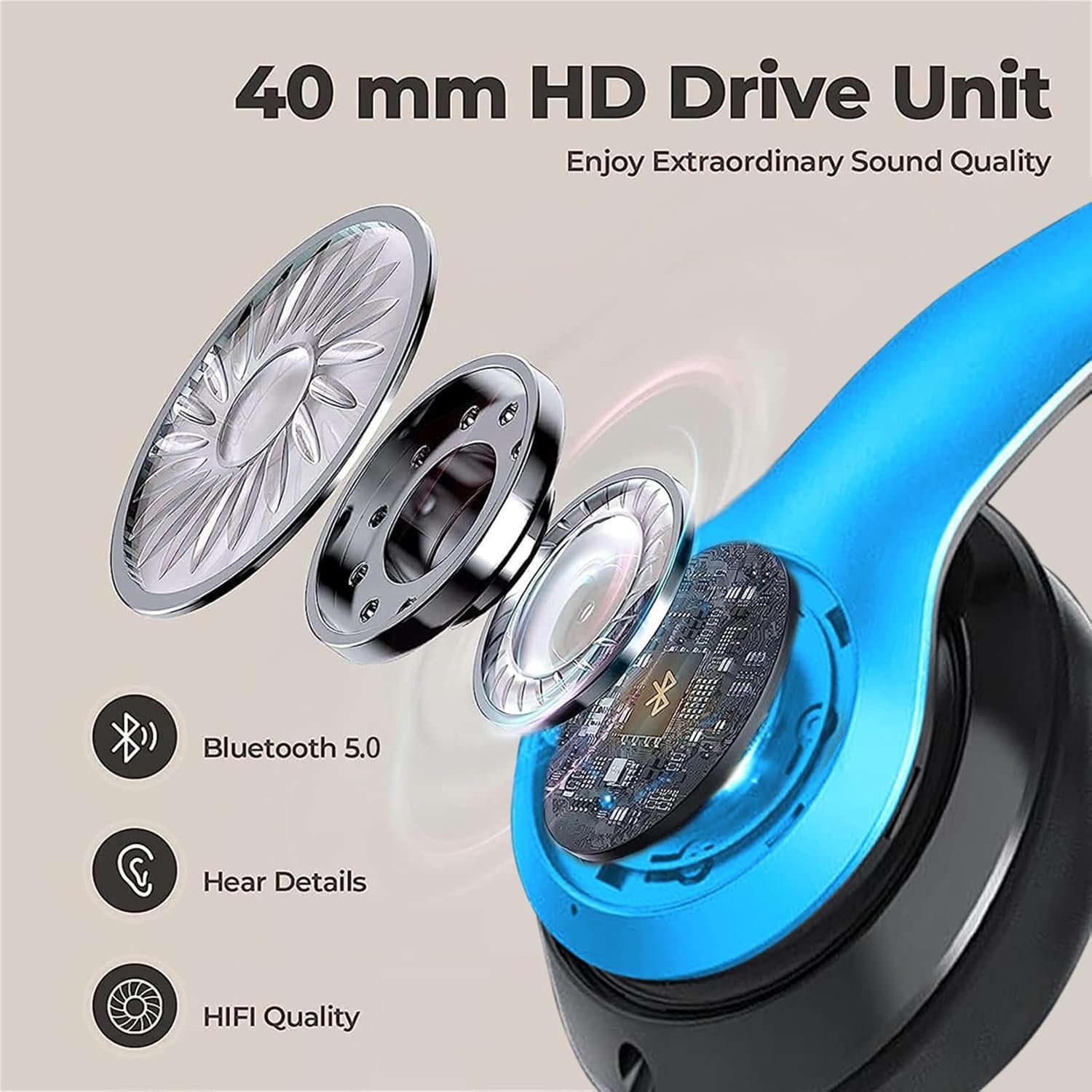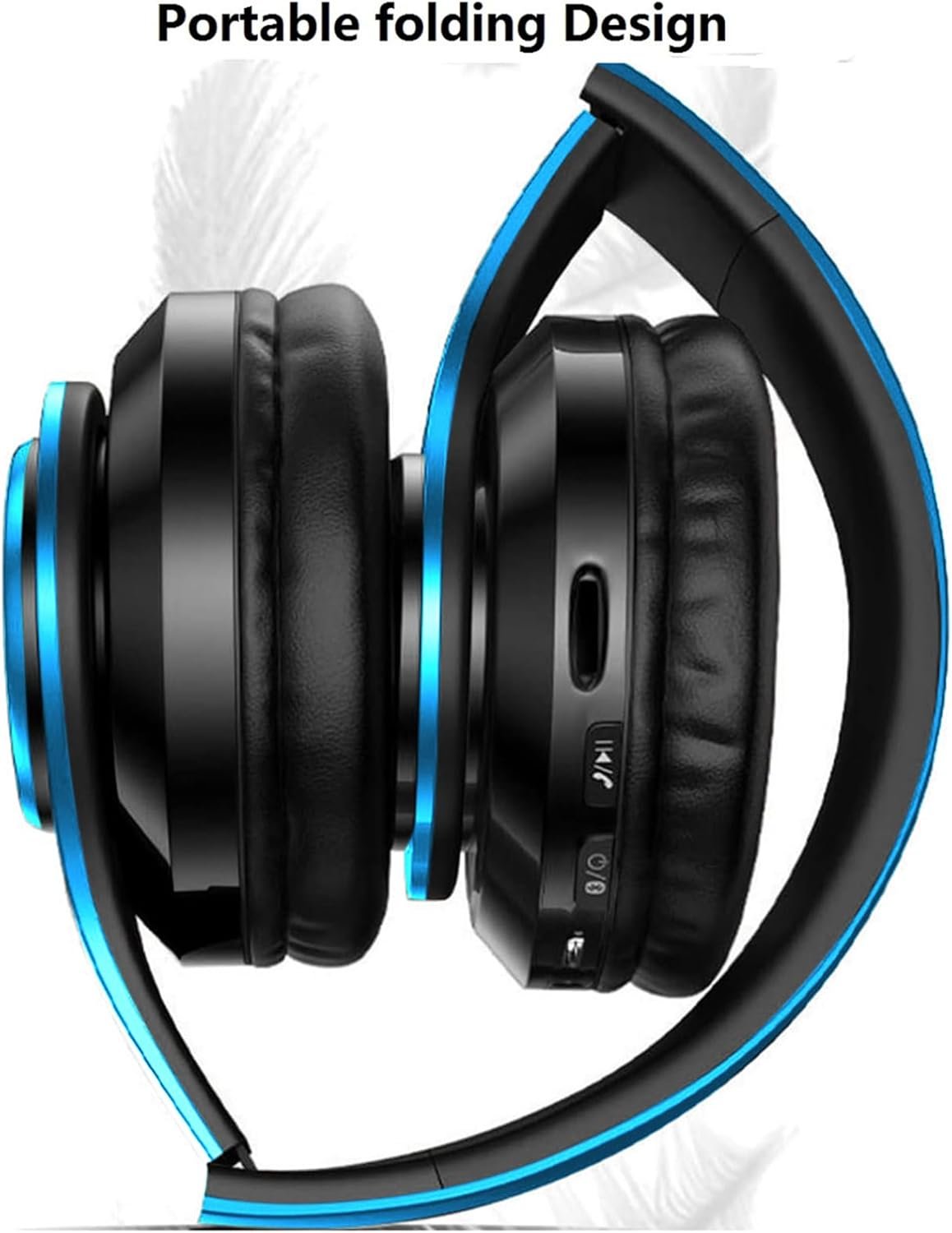 Bluetooth Headphones Over Ear, Foldable Lightweight Wireless Headset, Wireless Headphones with Built-in Mic, FM, SD/TF for Online Class, Office, PC, Phone (Blue)