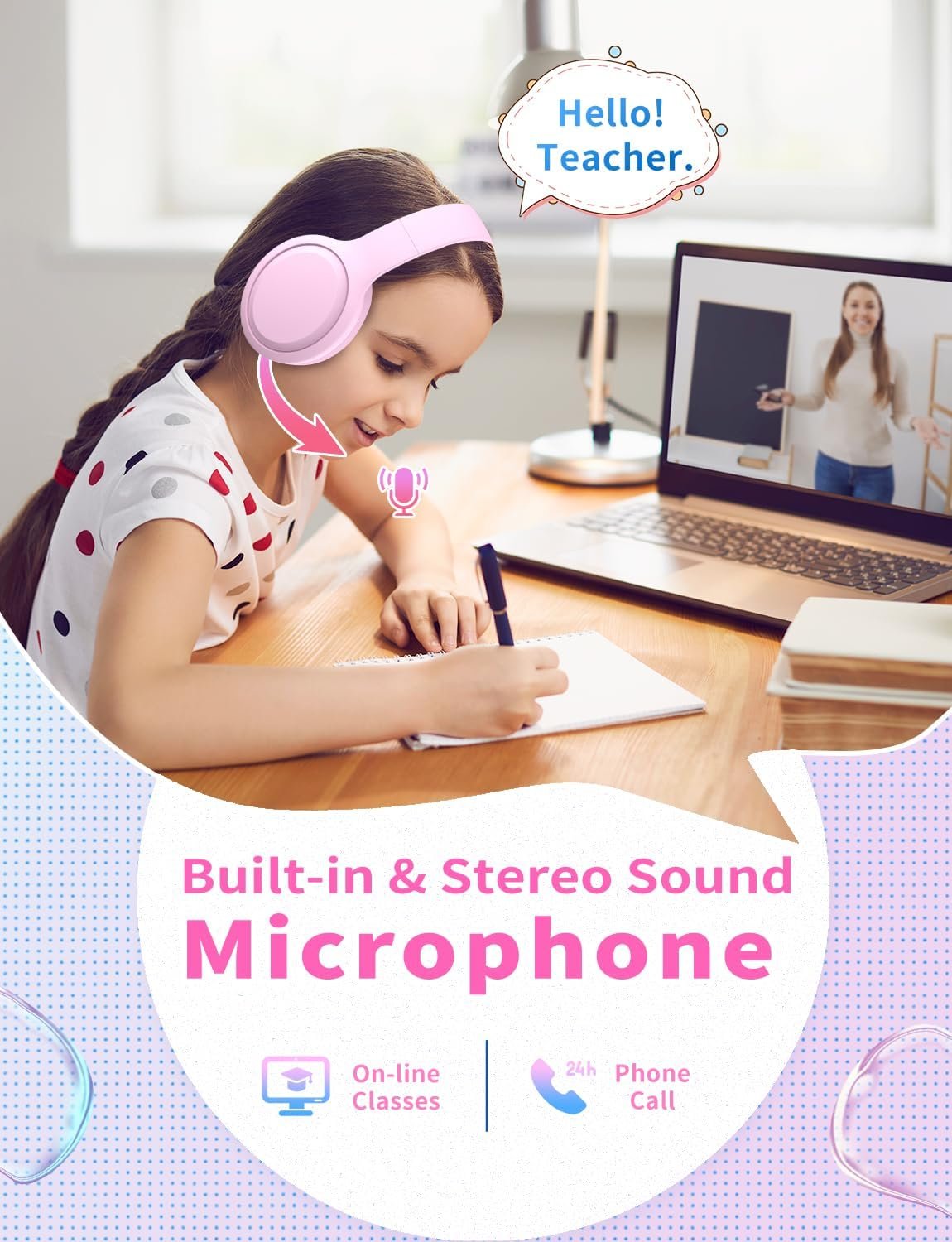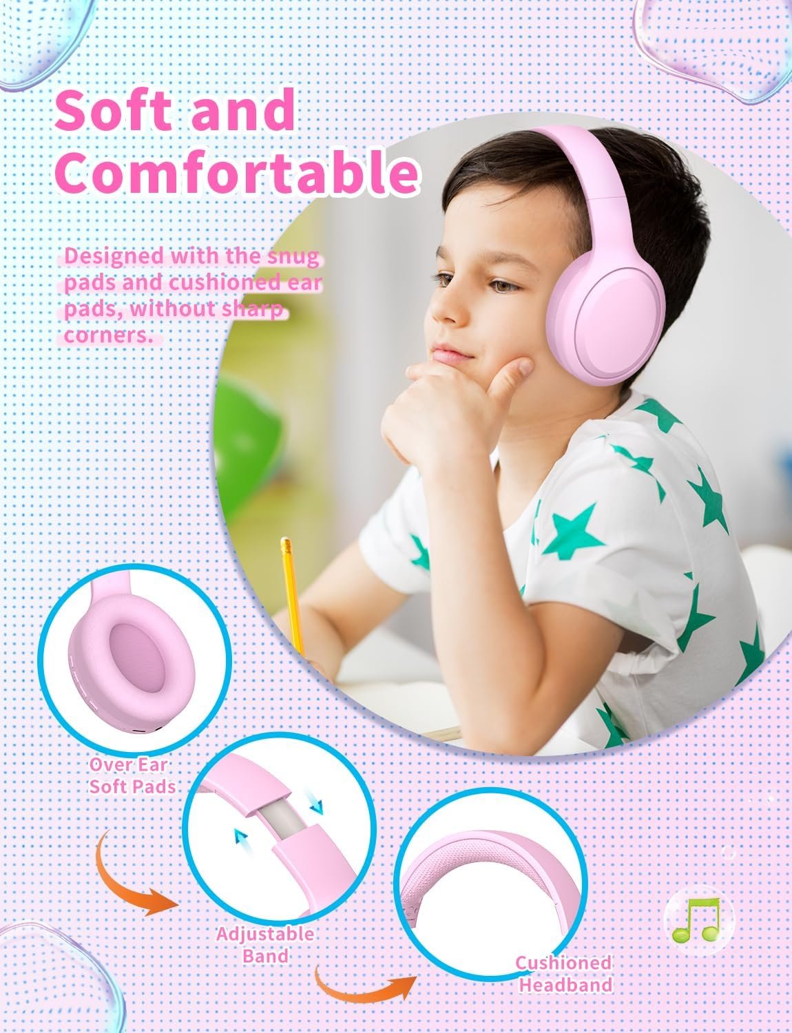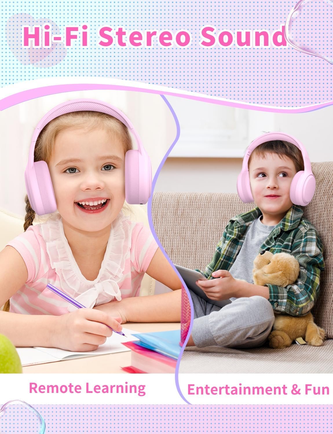 【Hifi Stereo Sound】 Wireless Kids headphones are tuned by a 40mm dynamic driver, delivering clear and high-quality sound to keep your little ones energetic and fruitful. It is a perfect kids gift, for any occasion, like birthdays, back to school, etc.