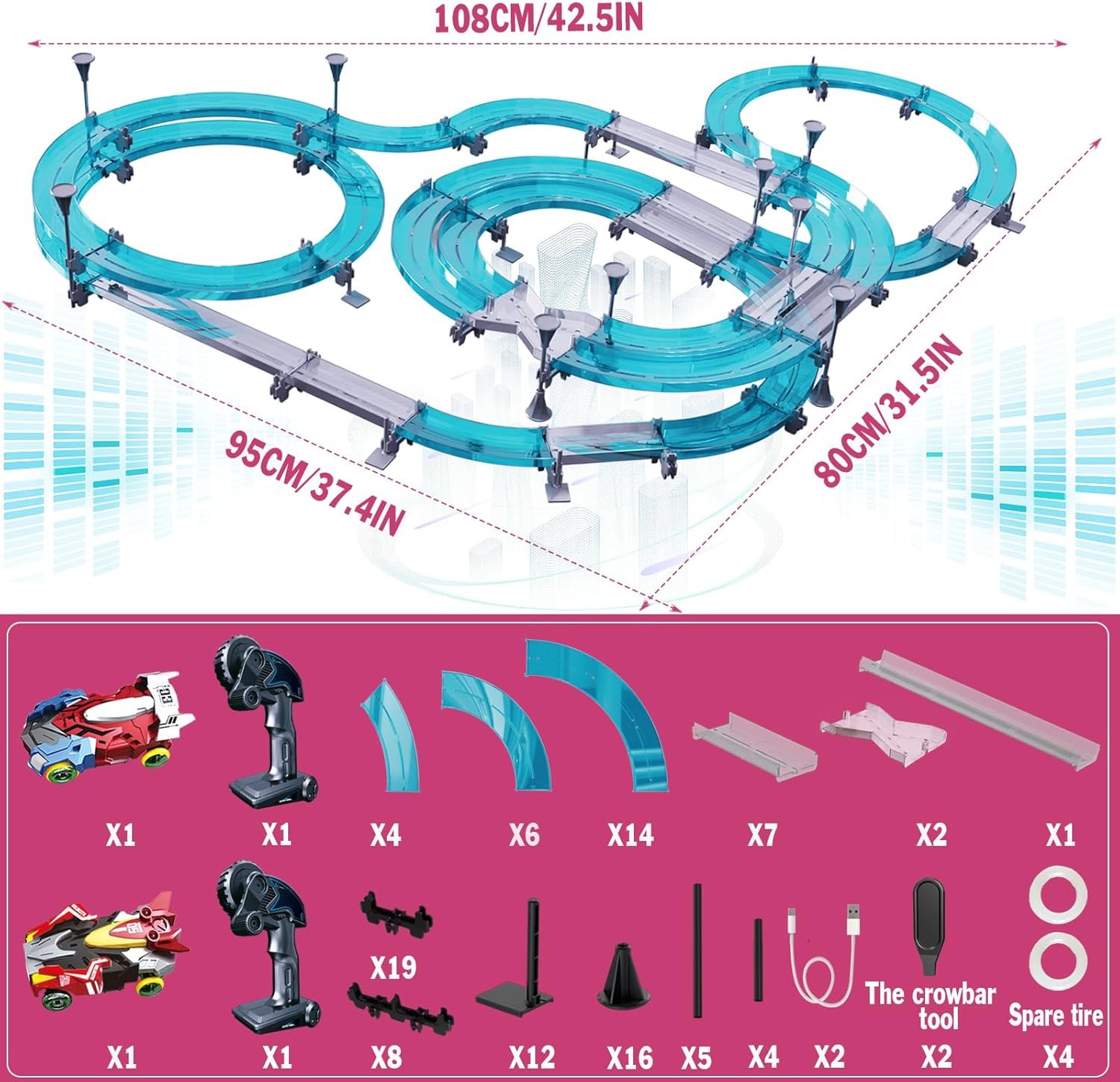 ✨🏁 【Extra Long Tracks 21.6 Ft for Easy Installation】The slot car track is 21.6 ft long, longer than most other products. It includes simple straight tracks, S-shaped tracks, circular tracks, and an exciting double-layer overpass track. The improved locking system ensures easy assembly. Crafted from durable, smooth, and burr-free materials, our track guarantees long-lasting performance and safety during intense racing sessions. It’s built to withstand the twists and turns of competitive play.