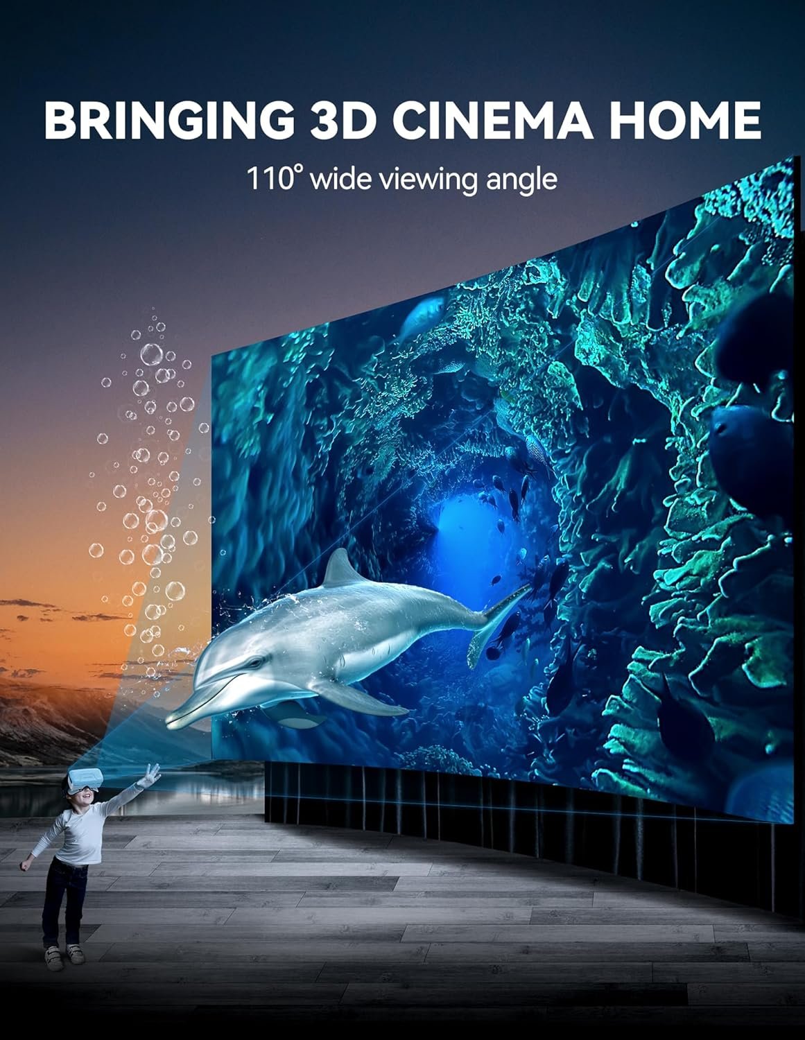 You can watch any 3D video or film and enjoy a wider view and immersive atmosphere.