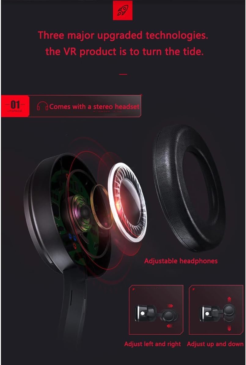 HIGH QUALITY 3D HEADPHONES: built-in 3D HIFI headphones offers HIFI audio effect. The virtual reality headset’s mask is cushioned with premium leather+memory foam, and is curved the space for the nose and upgrade the lens with eyes protective technology